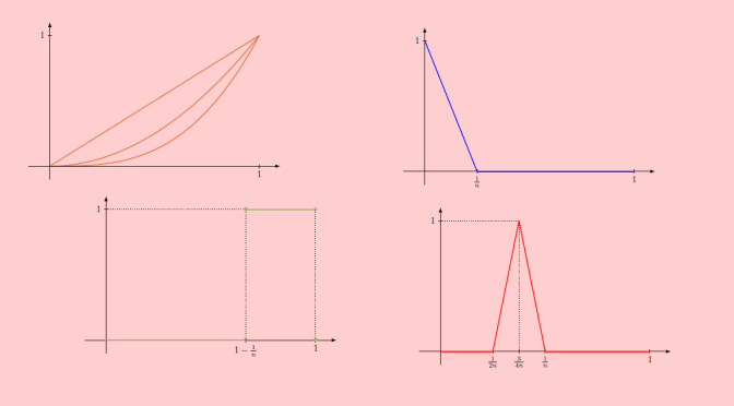 0 & \text{for } x < n\\ \frac{x-n}{n} & \text{for } n \le x < 2n\\ 1 & \text{for } x \ge 2n \end{cases}\] is continuous and monotonically decreasing. It converges to \(0\). However, the convergence is not uniform as for all \(n \in \mathbb N\): \(\sup\{f_n(x) : x \in \mathbb R\} =1\). Continue reading Counterexamples around Dini’s theorem